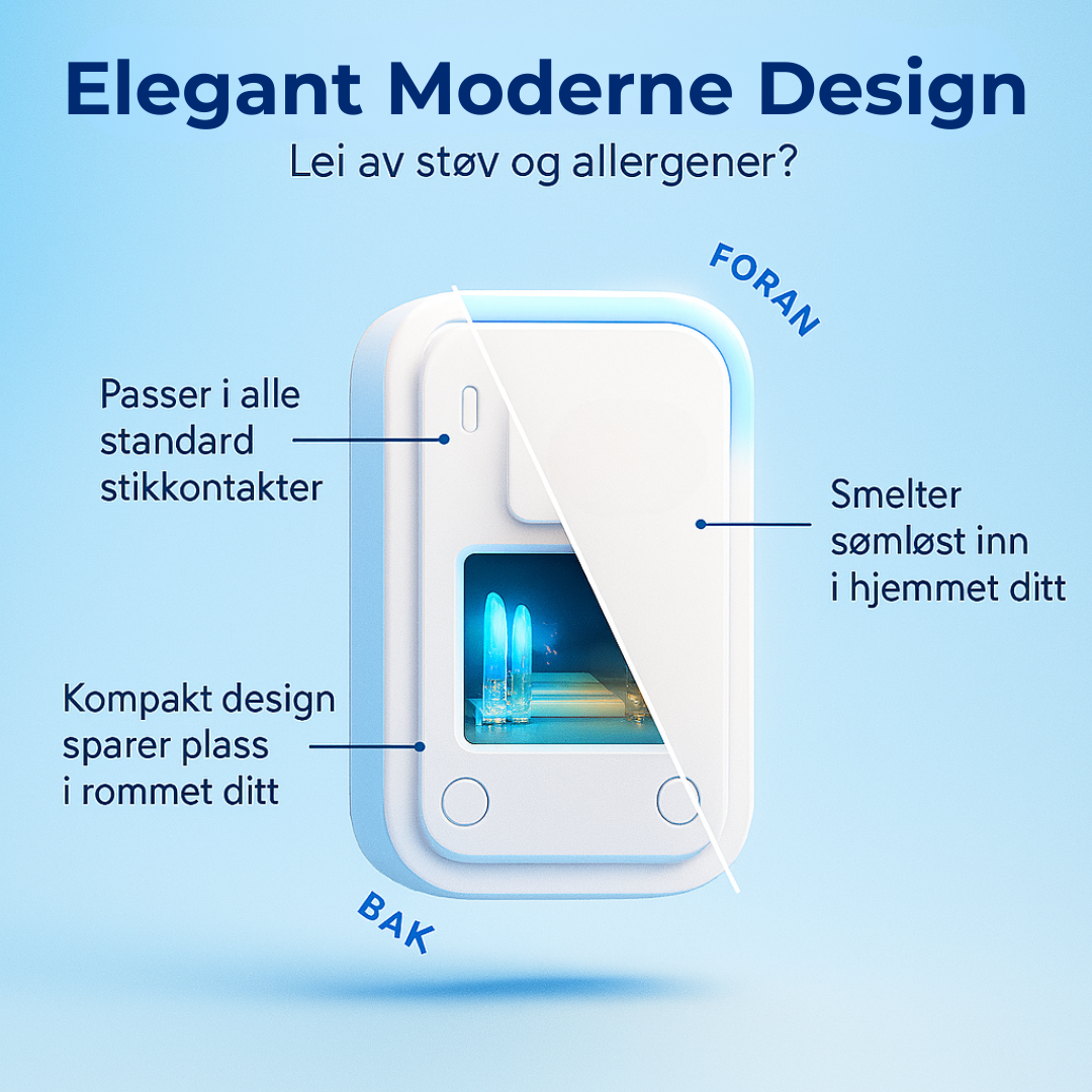 Etter fem år med grundig testing, omfattende forskning, nøye prototyping og en investering på over 870 000 kr, har vi endelig klart å kombinere vitenskapelig dokumentert luftioniseringsteknologi med en brukervennlig plug-in-enhet.